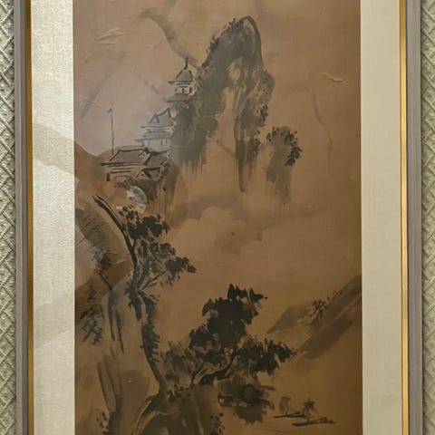 Stor asiatisk tavla – kinesiskt landskap – 70 x 100 cm