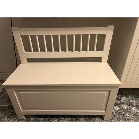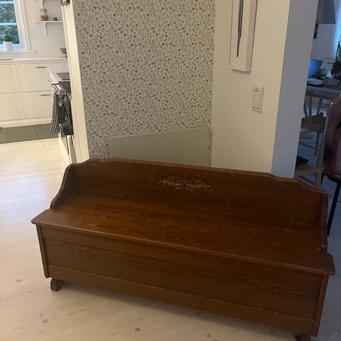 Mindre träsoffa med förvaring, perfekt i köket eller i hallen, brukslitage.