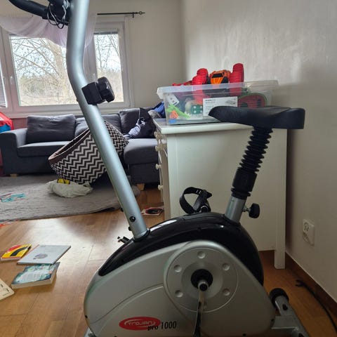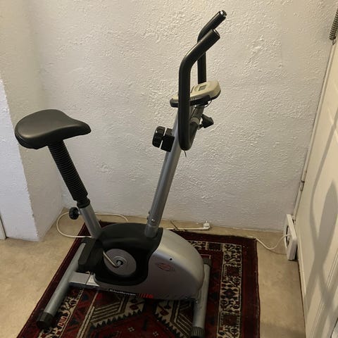 Motionscykel Trojan Sport med flertalet funktioner, mäter puls, kaloriförbrukning, hastighet och tid.