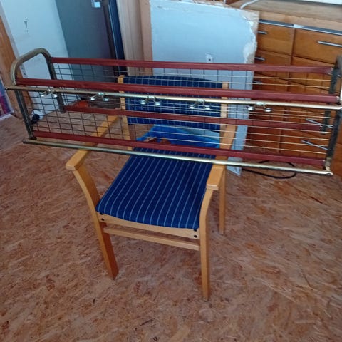Hatthylla med dubbla hyllor trä och metall. 1960-tal.