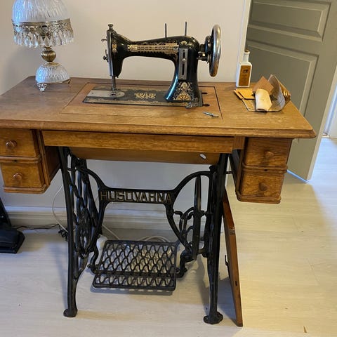 Husqvarna symaskin trampmaskin med träbord