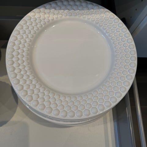 8 st Matteus-tallrikar, 32 cm. Två har varsitt väldigt litet ”färgsläpp”.