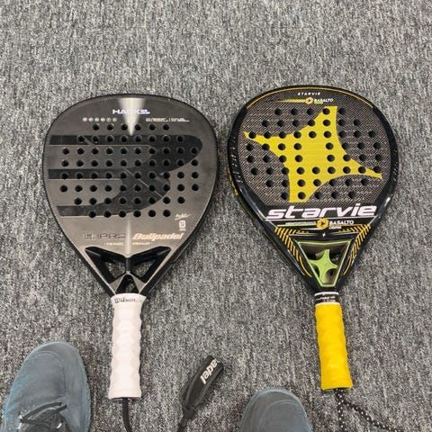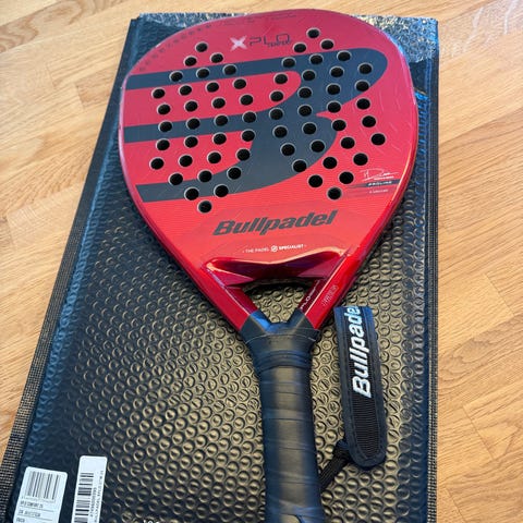 Det finns yttre slitage i ramen efter normalt spel nära glas/vägg, vilket är vanligt på padelracket. Det sitter i det yttre skyddet och påverkar varken känsla, balans eller spelbarhet.
