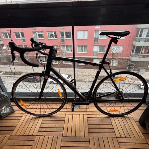 Specialized landsvägscykel för unisex med ramstorlek M och hjulstorlek 28"/700c. Cykeln har bockstyre och smala däck anpassade för landsvägskörning. Utrustad med 27 växlar, växelsystem med fram- och bakväxel med direkt drive, fälgbromsar samt pedaler för landsväg. Ram och gaffel är utformade för effektiv körställning på asfalt. Passar för pendling, träning och längre turer på väg. Väskor ingår.