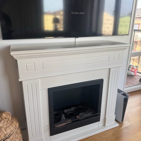 Öppen spis med dekorativ insats vit