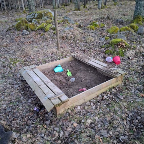 Sandlåda med lock.