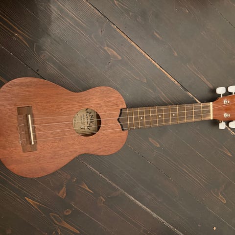 Gear4music ukulele i brun träfinish med fyra strängar. Instrumentet har grifflbräda med bandmarkeringar och öppna stämskruvar i metall. Levereras med enkelt svart fodral som skyddar vid förvaring och transport. Lämplig som komplement till gitarrspel eller som fristående stränginstrument.