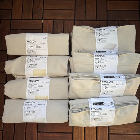 2st loungmoduler (Porto) med ryggstöd och dynor/kuddar från Rusta. Helt nya.