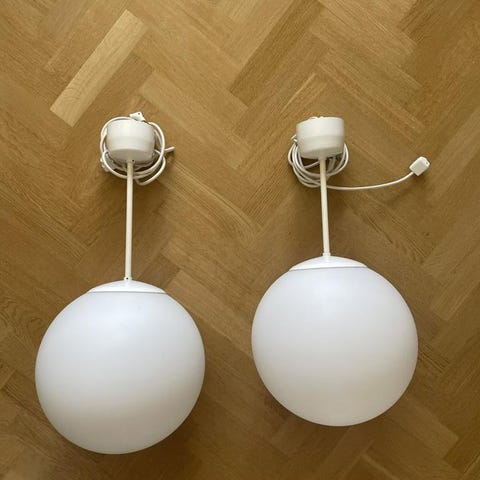 Taklampa porslin vit rund glob / kupa Ifö 2 st