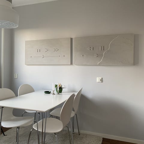 3-delad canvastavla "Papegojan" varje del är 70 X140 cm, totalmått 210 cm bred och 140 cm hög.