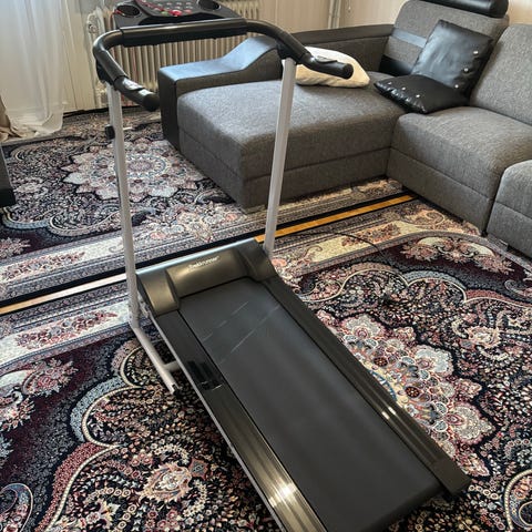 Mycket bra löpband som är hopfällbart och transportvänlig med hjul.