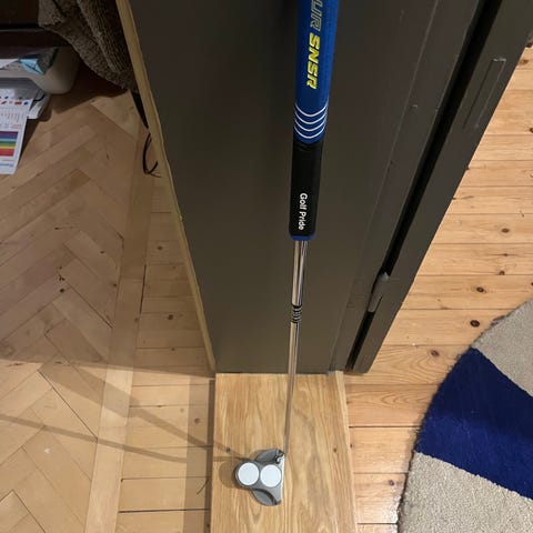 Odyssey Stroke Lab Ten putter i svart utförande. Putterhuvud i mallet‑design med tydliga siktlinjer. Skaft märkt Stroke Lab och grepp från Golf Pride SNSR. Passar för golfspelare som vill ha en stabil putter med hög tröghetsmoment och tydlig riktning mot hål. Levereras med headcovers enligt bild.