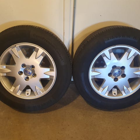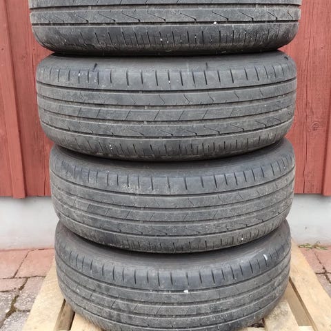 Continental sommardäck på Volvo originalfälg. 4-5 mm mönsterdjup. Suttit på Volvo V70 (årsmodell 2016).