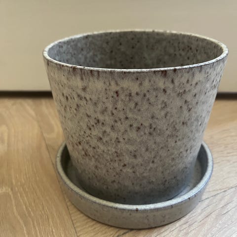 Kruka i stengods med fat från Arket