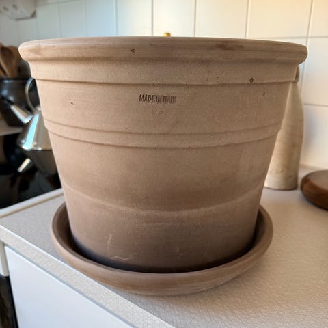 Kruka i stengods med fat från Arket