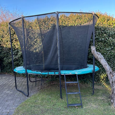 Studsmatta som är gjord för att vara i markplan, dvs nedgrävd stomme. Diameter 3,3 m.