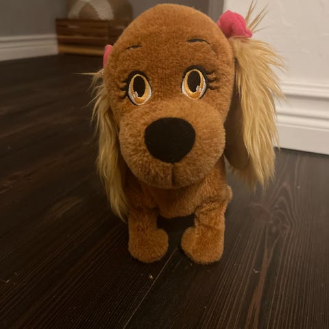 En leksakshund som är robotstyrd. Det blåa handtaget på kopplet har en knapp som man kan hålla inne så hunden går framåt (rullar framåt). Den skäller, viftar på svansen, sätter sig ner samt står på bakbenen som en riktig hund gör. Funkar perfekt. Är av märket FurRealFriends.