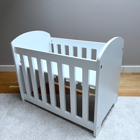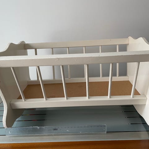 Fin vit vagga till dockor säljes i befintligt skick.