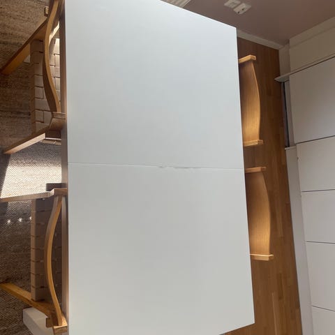 IKEA matbord i björk. Skivan laminerad, benen massiva. Rektangulär bordsskiva med raka ben. Bordet passar som matbord i kök eller vardagsrum och rymmer flera sittplatser längs långsidorna. Med iläggs-skiva blir bordet 200 cm. Designen är enkel och neutral vilket gör att bordet kan kombineras med olika typer av stolar och inredningsstilar.