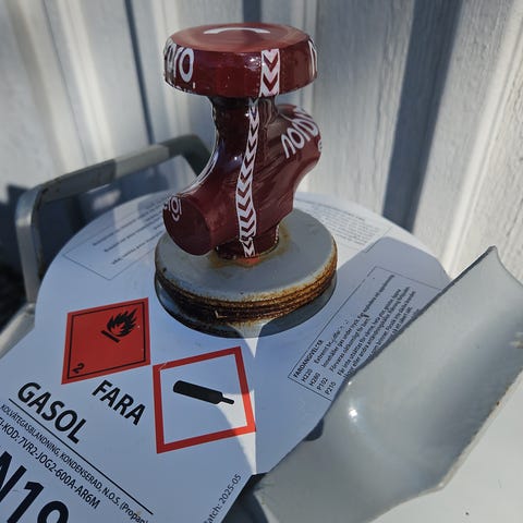 Gasolflaska pc-10 med 10-20% gas kvar i den samt att flaskan är besiktad till 2029