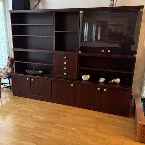 Bokhylla med vitrinskåp