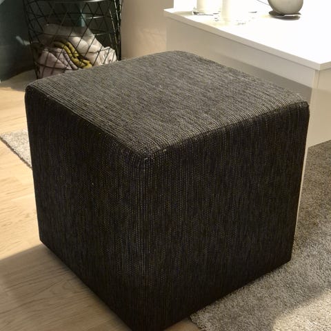 Mio sittpuff i grå sammet med förvaring.