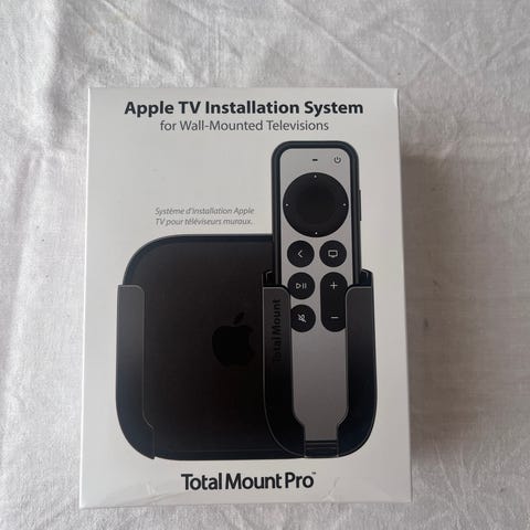 Apple tv mediaspelare i svart färg med tillhörande aluminiumfjärrkontroll. Enheten har anslutningar för HDMI, optisk ljudutgång, nätverkskabel (Ethernet) samt strömanslutning. Lämplig för uppspelning av digitalt innehåll till tv via HDMI-anslutning.
