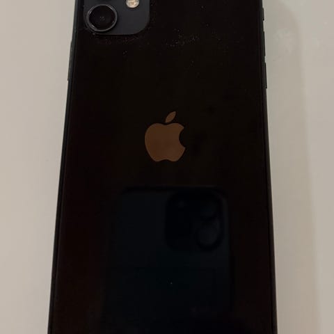 Apple iPhone 12 mobiltelefon med 64 GB internminne. Bra skick. Modellen har en svart färg och platt skärmdesign. Utrustad med dubbla kameror på baksidan och Face ID på framsidan.