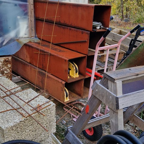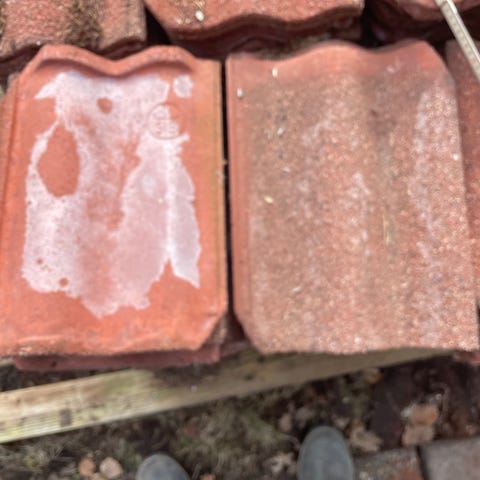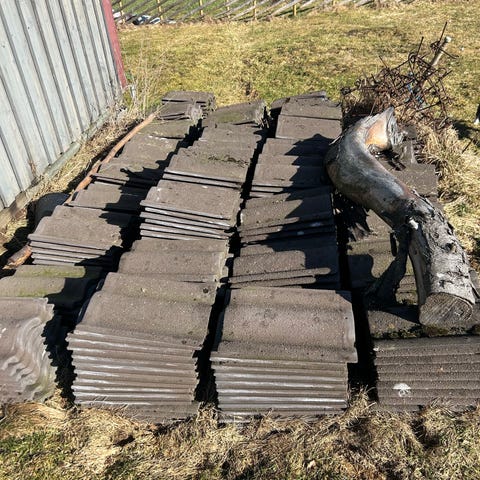 Har en pall tegelröda betongpannor över sedan jag la om taket. (264 st + några extra)