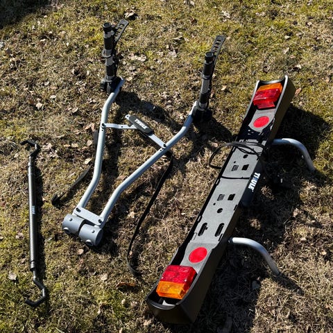 Thules Cykelhållare för montering på bilens bagageutrymme.