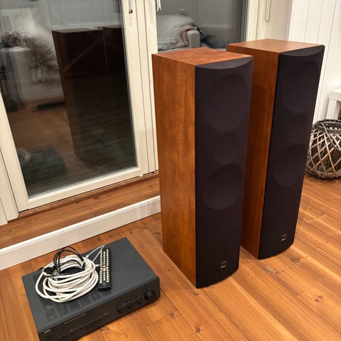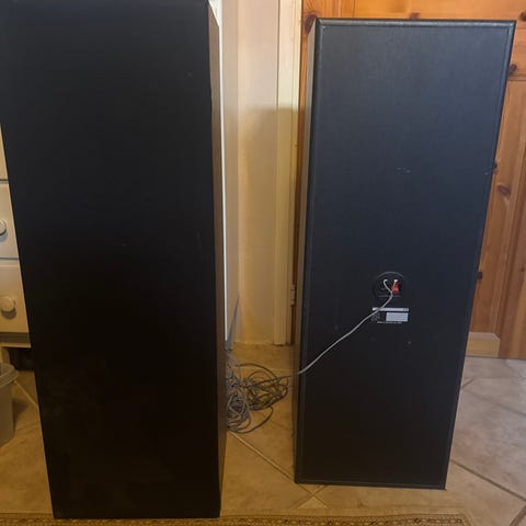 Ett fungerande högtalar system med 2st golv högtalare, en stereo och kablar!