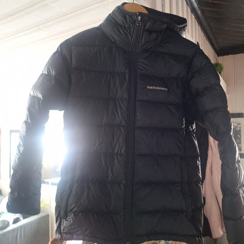 Den har en hel dragkedja, fast huva och elastiska justeringar vid ärmar och fåll för en tät passform