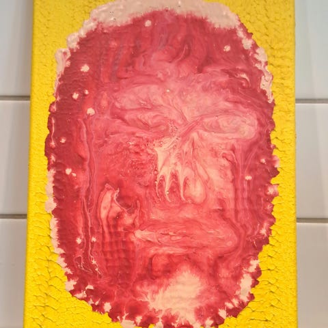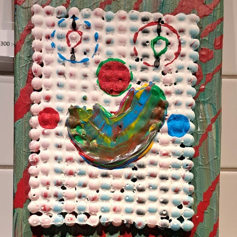 Målad med utspädd akrylfärg och plastkulor.