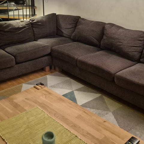 Säljer våran svarta sammetssoffa.