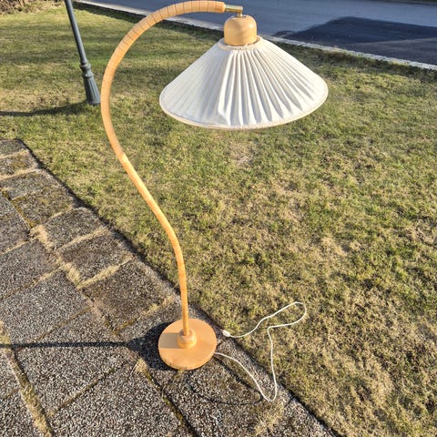 Charmig golvlampa. Fungerar. Skärmen är i plast.