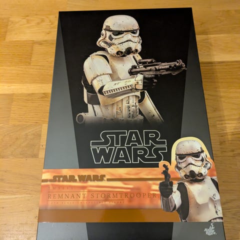 A themed figure stand with character’s nameplate and Star Wars logo