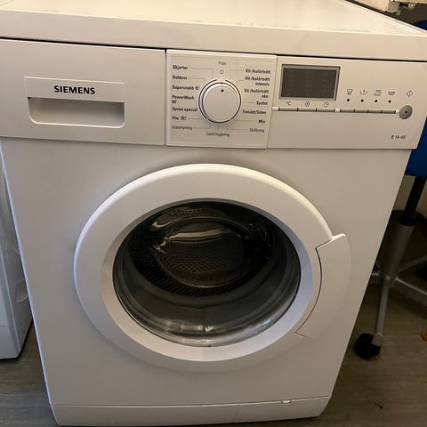 Siemens frontmatad tvättmaskin i vit färg.