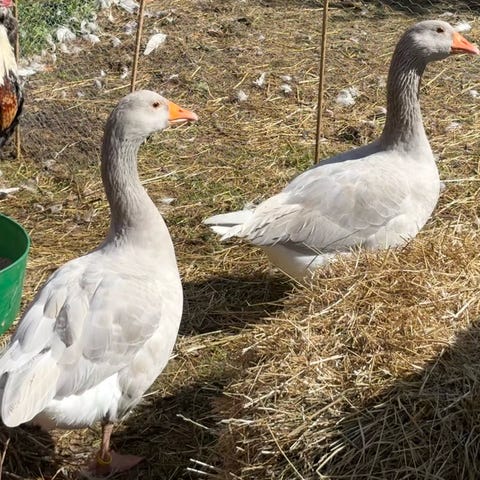 Skånegäss. Honor och hanar. Olika åldrar