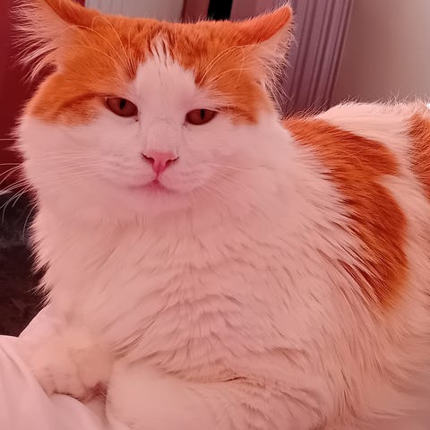 Fin hane 10 månader söker bra hem Norskskogkatt Ragdoll vit med röda tecken