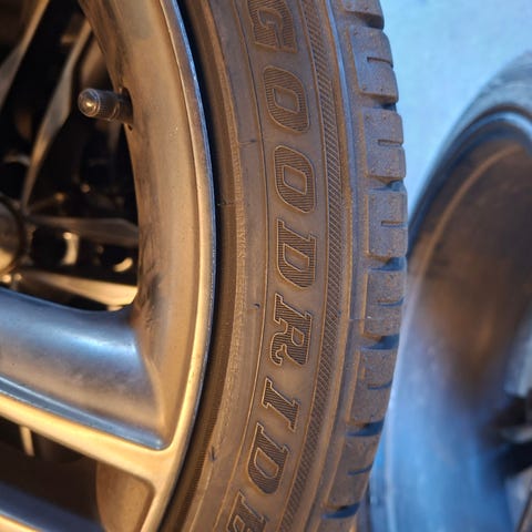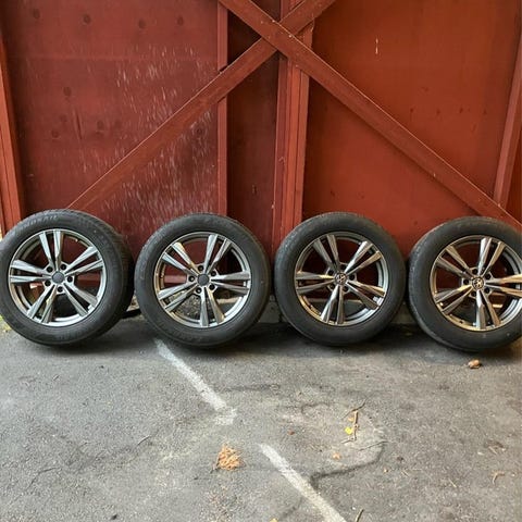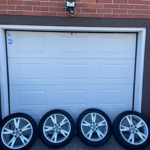 Säljer en uppsättning sommardäck till Audi A4 på Audi originalfälgar. Ett däck punka på.