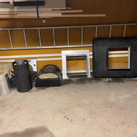 Helt nya Schiedel Permeter Smooth skorstenstillbehör i vit färg för modulskorsten. Paketet innehåller olika delar och sektioner, bland annat rördelar i dimensioner runt Ø200–300 mm samt tillhörande komponenter som exempelvis vridspjäll. Delarna är avsedda för montage i ett Schiedel Permeter-system och används vid uppbyggnad eller komplettering av skorsten för eldstad eller liknande installationer. Alla delar levereras i originalkartonger med märkning av artikelnummer, dimensioner och vikt enligt etiketterna på förpackningarna.