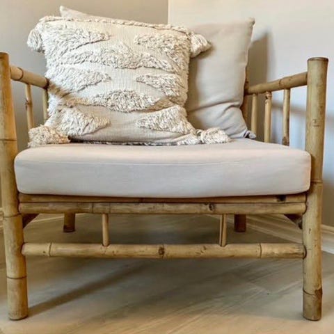 Fåtölj i rotting med flätad stomme i naturfärgad ton. Sätet är lutande och fåtöljen har en lös dyna i mörk textil. Passar för inomhusbruk i exempelvis vardagsrum, uterum eller sovrum som sittplats eller läshörna. Gör sig även bra för utomhusbruk på exempelvis veranda eller liknande.
