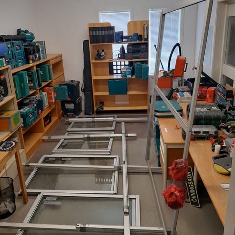 Finns fler fönster men de är inte kompletta, men borde gå att ta glasrutor från dem. Allt 1000kr