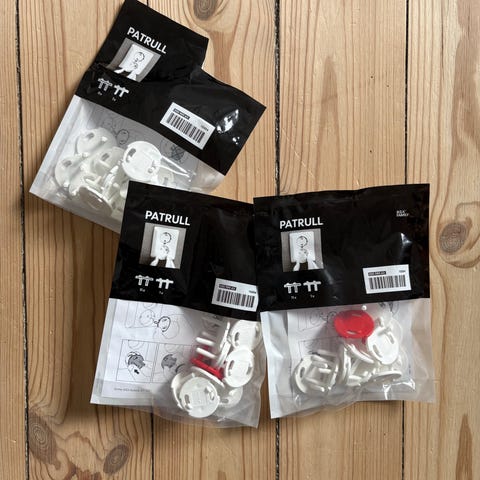 Oöppnad förpackning med 10st barnlås magneter. Beställt från lugna föräldrar men kom aldrig till användning.