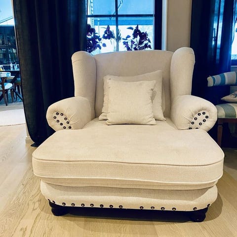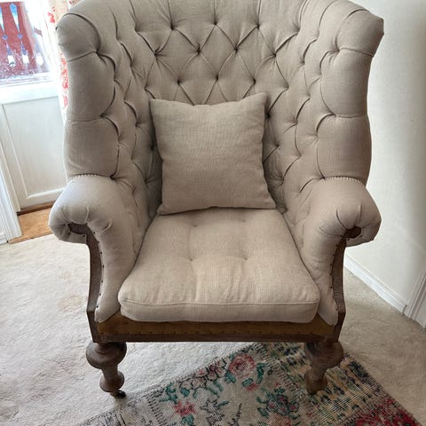 Två mycket fina fåtöljer i sandfärgad sammet.