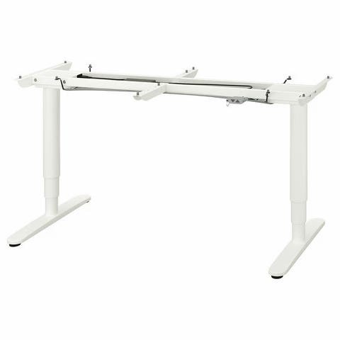 De vita benen följer med om man vill ha de annars kan de monteras bort. Nät för kabeluppsamling finns med.