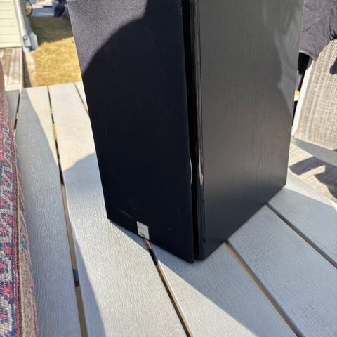 Acoustic Energy 109 AE 109 AR109 golvhögtalare i par med träfinish som har en påbörjad förändring men låter lika bra för det. svarta frontskydd.