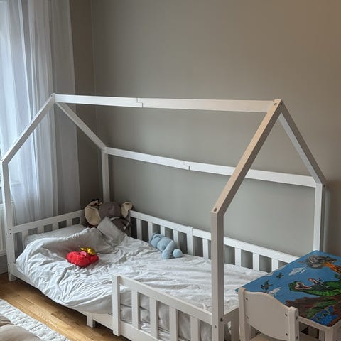 Det är en likadan som på bilden men med 3 gallersidor, Pappan vill inte ha denna säng till sonen därav annons. Demonterad så lätt att ta i bil. En skruv verkar saknas men det går att köpa till. Nypris runt 4000 med madrass.