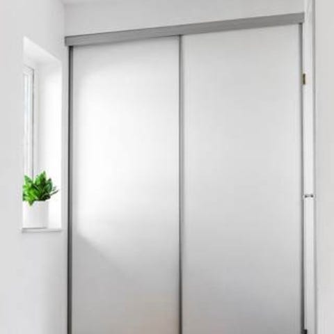 Komplett skjutdörrpar i vitt.