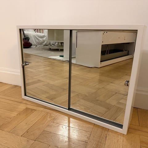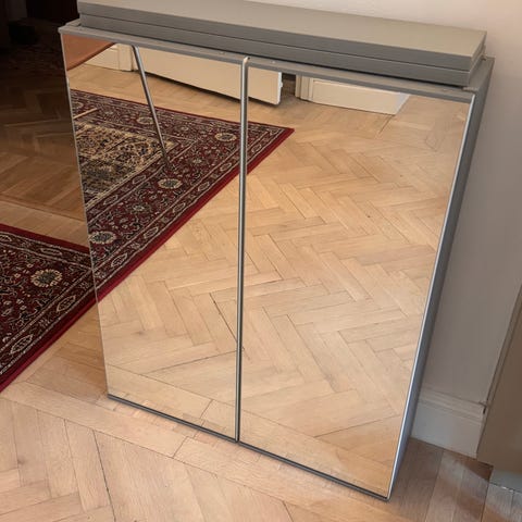 Svedbergs spegelskåp med två speglar och 3 hyllor. Spegelskåpet är i fint begagnat skick.